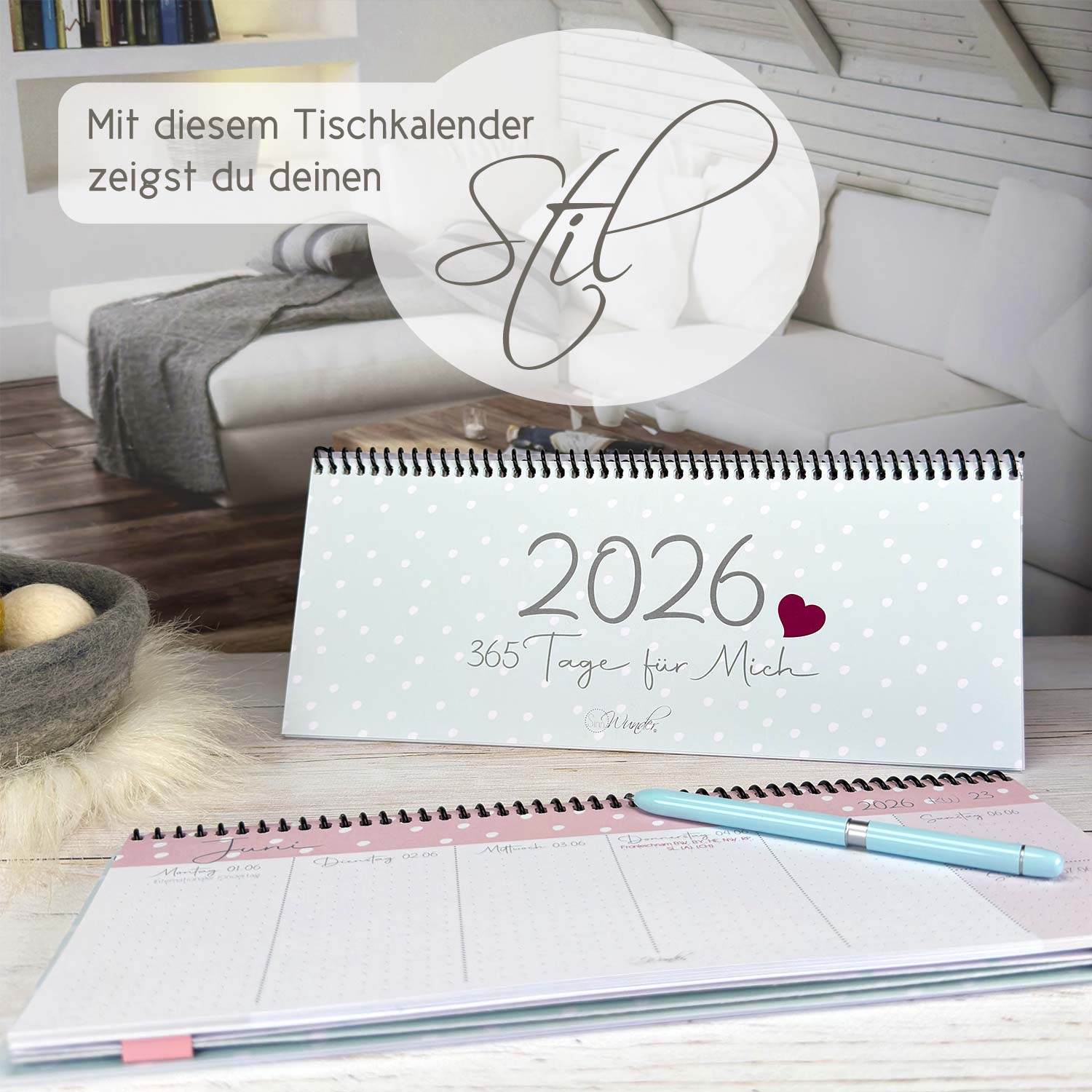 Der SinnWunder Tischkalender versorgt Dich in gewohnter Weise mit allen wichtigen, kalendarischen Informationen, wie Feiertagen, besonderen Tagen und Kalenderwochen. Er kann flach liegend auf dem Bürotisch platziert, oder aufgestellt werden und soll Dich schon optisch dazu einladen ihn mit Infos und Terminen zu füllen. Die Wochenenden sind farblich dezent hervorgehoben und jedes Quartal hat eine andere Farbgebung. Zusätzlich haben wir Weihnachten, als fünfte Jahreszeit, besonders schön gestaltet. Jahresübersichten für das aktuelle und kommende Jahr, sowohl als auch Monatsübersichten und ein paar Seiten für Notizen sind ebenfalls enthalten. Der Kalender macht sich auch sicherlich gut in der Küche und ist eine wundervolle Geschenkidee!