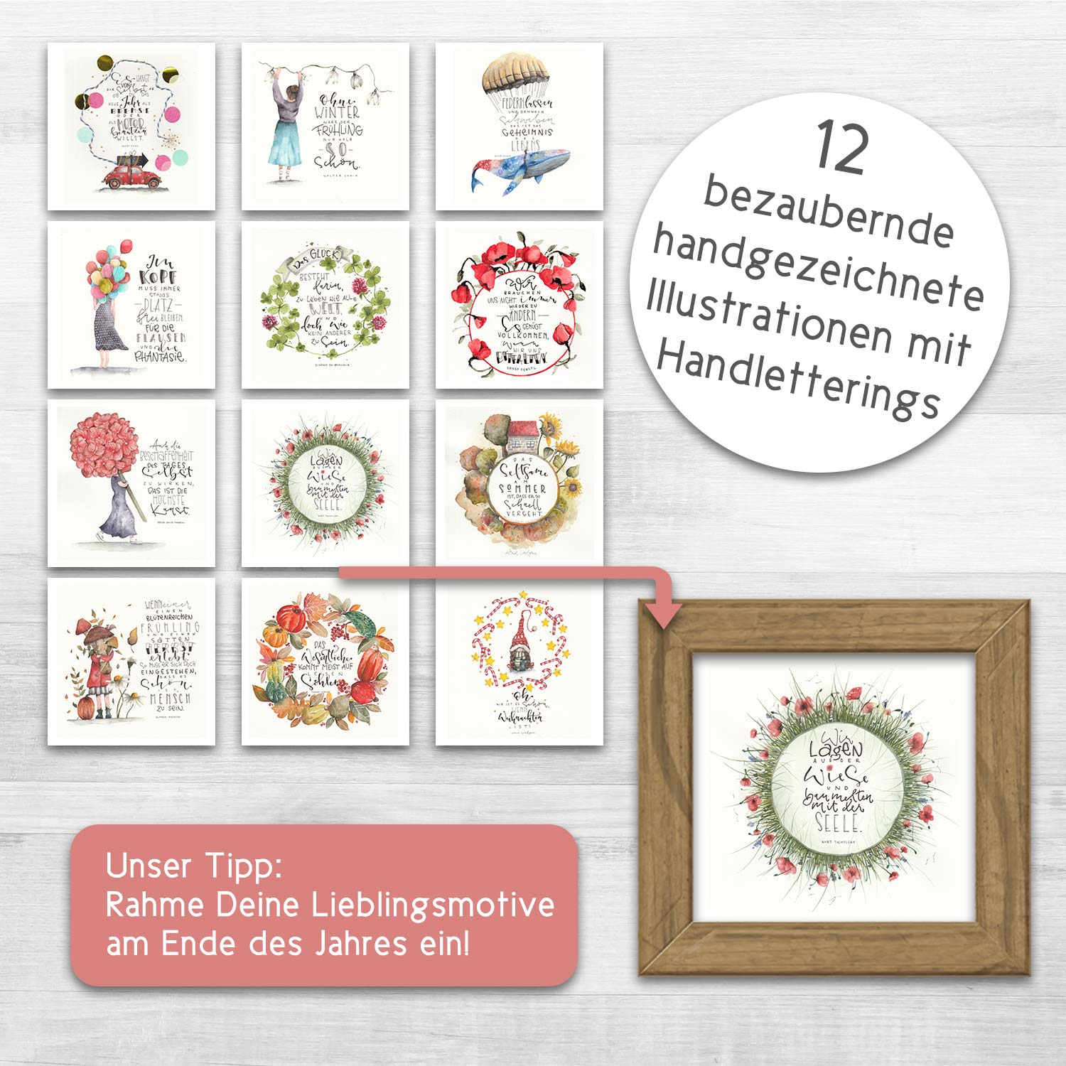 - Die wunderschönen Zeichnungen mit Handletterings können am Ende des Jahres gerahmt werden