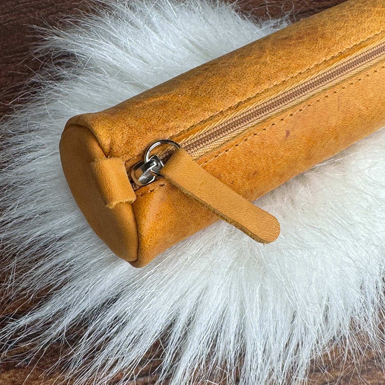 Man will es kaum mehr aus der Hand geben, denn diese runden Federmäppchen aus italienischem Vollleder fühlen sich einfach herrlich weich an. Die Schlamperrolle mit einem Durchmesser von 5 cm und 21 cm Länge nimmt viele Stifte auf und ist trotzdem nicht zu riesig, um in der Handtasche Platz zu finden. Und weil wir gerade von Handtaschen sprechen: auch andere Gegenstände, wie Eyeliner, Wimperntusche etc. lassen sich darin stilvoll dabeihaben und es kehrt Ordnung in der Tasche ein. Die klassischen Farben Schwarz und Cognac-Braun lassen das Stift-Etui nicht aus der Mode kommen. Die Feintäschner legen bei der Verarbeitung viel Wert auf Details und hier war wieder viel Handarbeit gefragt.